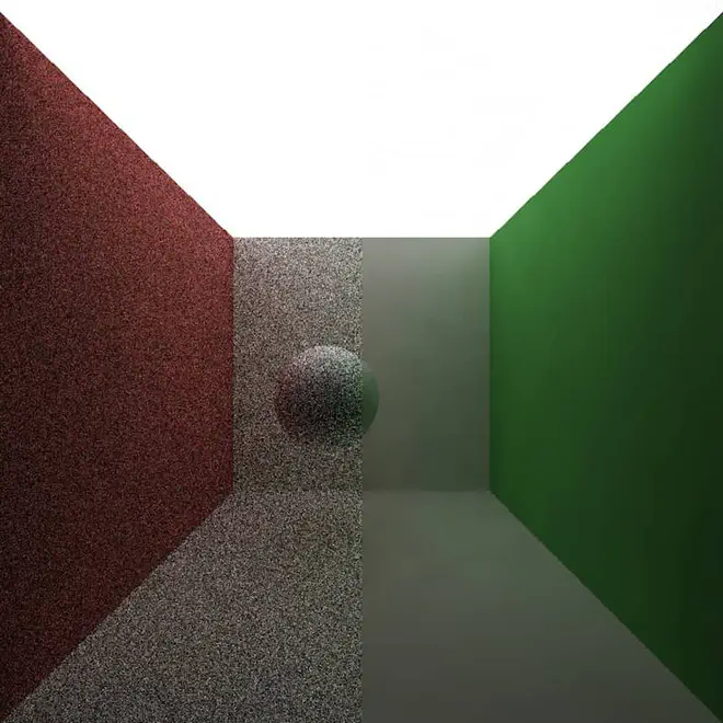 The following graph compares the influence of filter size and image resolution on our denoising filters. It is tested on the stanford bunny scene with 10 samples per pixel, 800x800 resolution, 8 light bounces per sample.