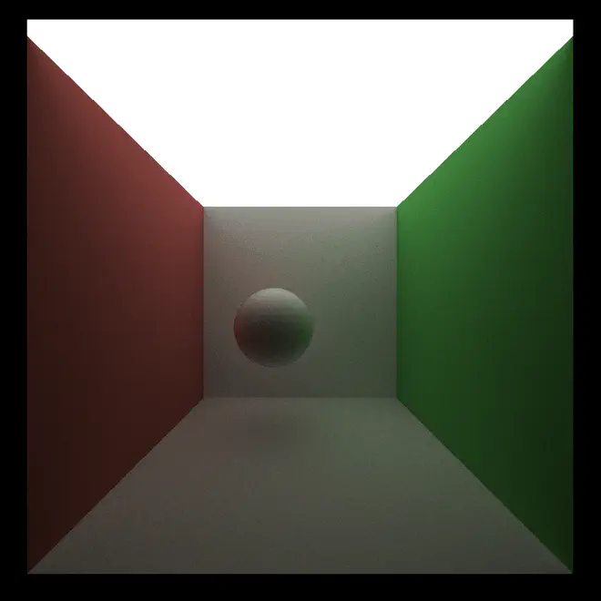 Default Cornell scene with 10 samples per pixel, 800x800 resolution, 8 light bounces per sample.