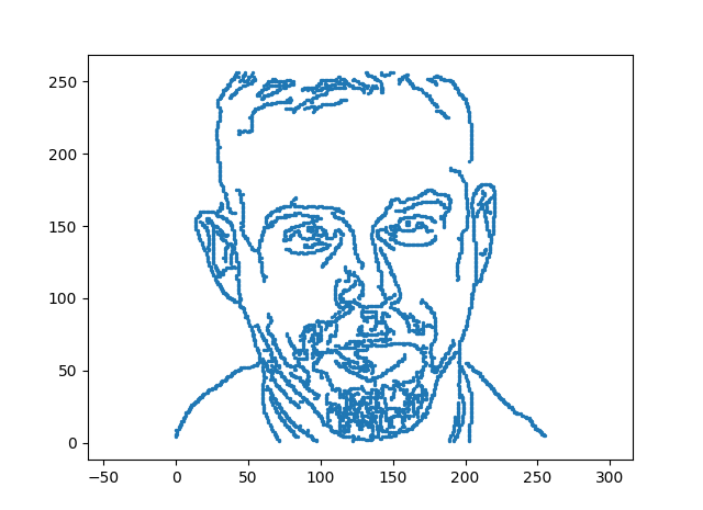 视觉算法的目标是找到一条路径,一系列的2D点,机器臂按照这些点的顺序就能画出一张肖像。